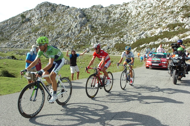 Valverde, Rodriguez, and Contador kept a close watch on each other on the road to the summit finish