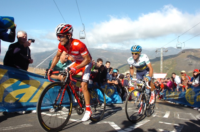 Racing on climbs of a gradient unseen in the preceding two Grand Tours, four riders staged two separate but thrilling battles for honours on the day and in the general classification on the queen stage of the 2012 Vuelta a Espana.
