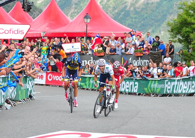 The Spanish trio of Alejandro Valverde, Joaquim Rodriguez, and Alberto Contador were left to contest the win, with the Movistar rider taking his second stage win of the race.