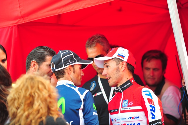Valverde and Rodriguez share views as Valverde makes his way to the podium