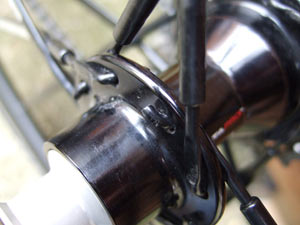 Spoke paint marked by contact with hub