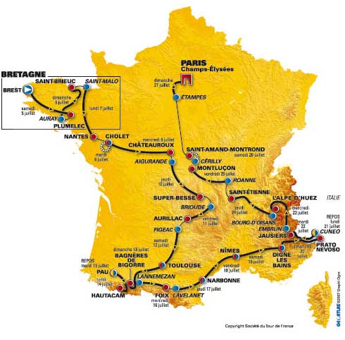 The historical province of Brittany is accustomed to hosting the start of the race, having done so six times previously. Interestingly, on those occasions Coppi, Antuetil, Merckx, Hinault and Indurain have gone on to win the race.