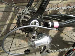 The frame is designed by Condor and hand-made in Italy, and follows fairly conventional lines – no bad thing in this increasing age of unnecessary curviness, allowing the few curves to shine. There’s some subtle bulging along the downtube, a sturdy bottom bracket junction and, out back, a Deda Drive Box and Tail seat and chainstay configuration. The chainstays are flared and the seat stays end in a wishbone.