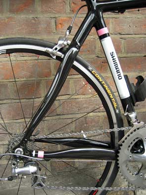 Condor use a carbon wrap method for the front triangle, in which layers of carbon fibre sheet are laid in place over mitred and butt-bonded joints. Frame weight is a claimed 1,035g for a medium, which while not as light as some of the waifest frames available, is certainly no heavyweight. It does make you wonder where the few extra grammes are hiding though. Maybe it’s in the paint?