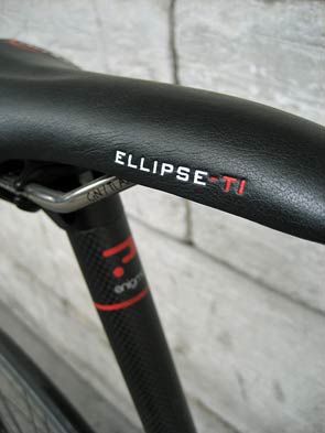 Many Eclipse frames will be sold as just that, framesets. But Enigma do complete build options, and the £1,599 sample bike sent in for this test displays a good choice of components. With the high price of titanium and Enigma only being a small company, it’s no surprise to see only Campagnolo’s fourth-rung 10-speed Veloce Infinity groupset fitted. Much of its DNA is similar to that of the higher ranking groupsets, but the finishing materials and performance is a notable step down from Chorus and Record.