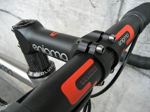 Campagnolo also supply the Vento wheels. Tipping the scales at 1755g, they’re not the lightest, but are on a par with the popular Fulcrum Racing 5’s fitted to the other test bikes. Tyres are Michelin Krylion Carbon 23mm and the stem, bars, saddle, seatpost and seat collar Enigma branded parts. RCUK has spent some time with Enigma’s in-house branded parts and as yet found no complaints; even the saddle offers a decent level of comfort. The bars are well-shaped and the two-bolt seatpost clamp easy to adjust.