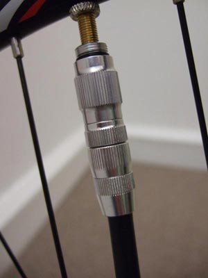 Initially the tester found the system slightly slow and cumbersome in comparison to a conventional chuck with locking lever as used on the Steel FD model, especially when removing the chuck. With practice, however, it becomes apparent that this is a much better way of doing things. Not only does it provide a perfect seal every time, but there is next to no chance of bending the little Presta toggle screw core. Removal feels stiff until you learn to turn the chuck enough to allow air compressed in the hose to escape, at which point the chuck unscrews easily.