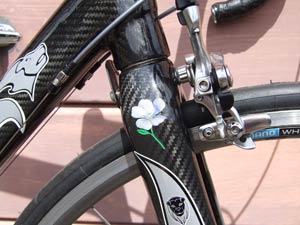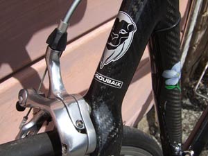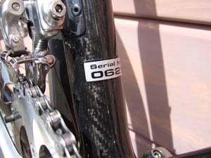 This may not be the case with newer examples, since not only has the shape of their tubes but the very method of construction changed recently. While the MF1 is still available to special order made using the carbon-wrap technique, almost all Museeuw frames are now built using lugged construction. The result is said to be even stiffer thanks to the sheer size of the external carbon lugs. Quite who would want a frame even stiffer than this MF1 is hard to imagine… unless the Lion of Flanders himself has just put in a special order.