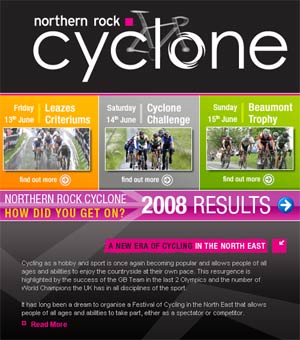 The Northern Rock Cyclone festival of cycling is already on schedule to be the biggest and best event since its inception. Plans are now well advanced to make it one of the UK’s biggest cycling weekends in 2009 and the website will open for online entries on 1 November 2008.