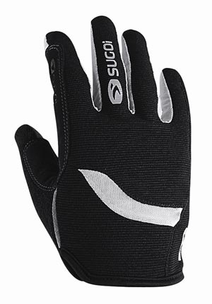 Just such an item is Sugoi’s Evolution Full Glove, which owes much to mtb and even motocross practice with a thin mesh fabric for the back and fingers attached to a synthetic leather palm. This has ‘VControl’ pads with rubber gripper patches to support and protect the median and ulnar nerves. The thumbs feature a terry towelling moisture control fabric, while the neoprene cuff has a Velcro closure and tab to ease pulling on the glove.