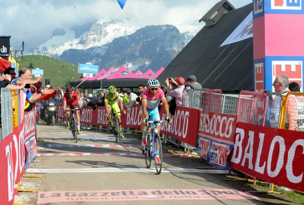 The Colombian struck out on the final climb and rode solo to the finish to win ahead of compatriot Carlos Betancur (Ag2r La Mondiale) and race leader Vincenzo Nibali (Astana).