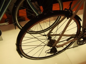 Sitting somewhat unheralded on the SKS stand at Eurobike (and annoyingly lit from underneath) was a cycle fitted with what look like quickly detachable – or quick fit – mudguards covering as extensive a segment of wheel as the German company’s regular full-length guards.