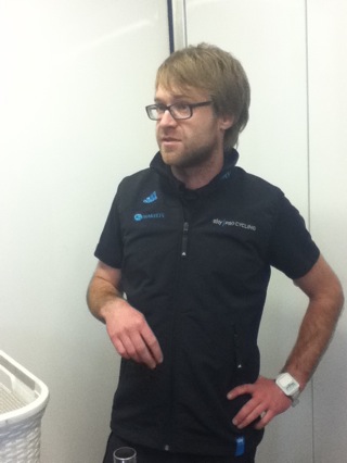 The riders are infrequent visitors to the service course, but today Dowsett and Michael Barry are here to ride out with the press, and the relationship between the men who rely on the efficiency of the service course is obviously warm. Fifteen of their colleagues are out at the moment, says Verrall, engaged at the Giro or the Tenerife training camp. The staff of the service course, the riders, and management of Team Sky meet once a year at an end of season get together in which Verrall hands over training bikes for the winter months ahead.