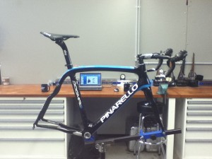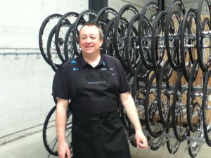 An industrial unit in northern Belgium is figuratively, and, the Classics season aside, literally hundreds of miles from the races it serves. A television in the office is tuned to Eurosport, while the mechanics preparing bikes pause to watch the closing kilometres on a laptop on the work bench. On a recent Sunday, work stopped for Wiggins’ emphatic ride in the closing time trial of the Tour of Romandie. Text messages with news of podium finishes and other notable successes are sent to all members of the organization.