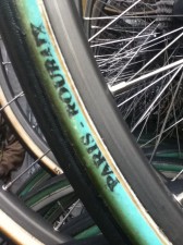 Adjacent to the peg on which Wiggins’ former time trial machine hangs are racks of wheels, mostly Shimano Dura Ace C35s. Nearby, another rack holds the hoops ridden by at Team Sky the Classics: box section rims shod with wider tyres, some helpfully printed, ‘Paris-Roubaix’.