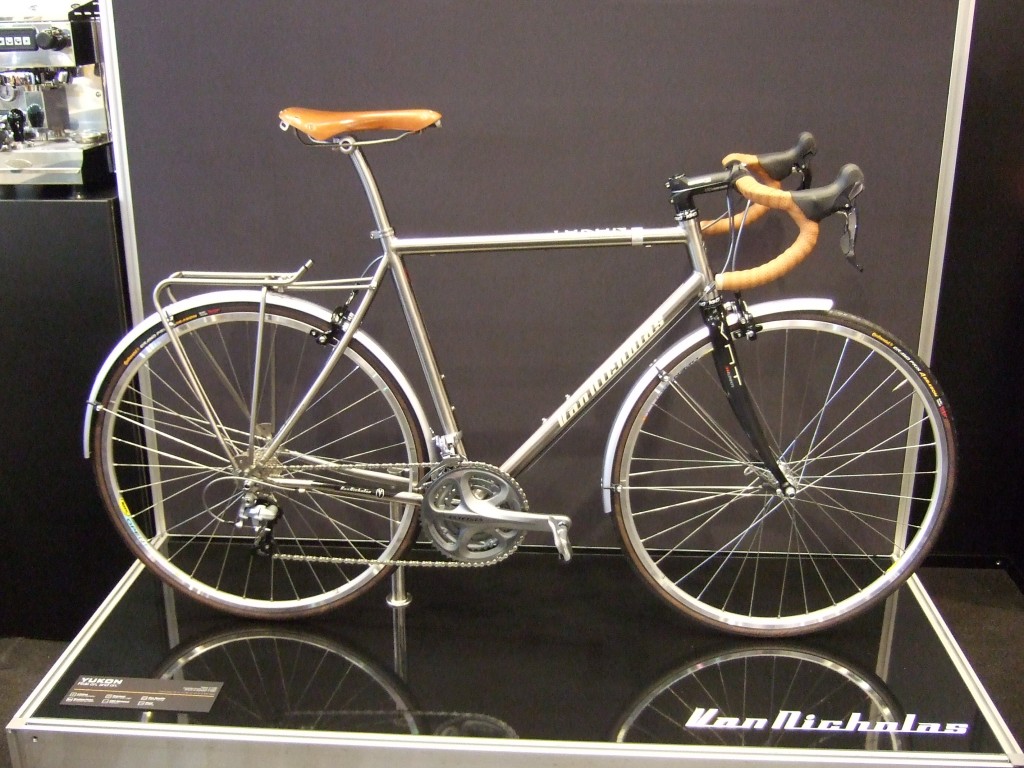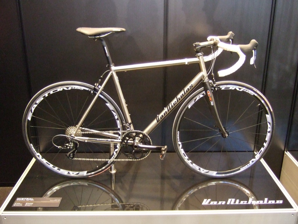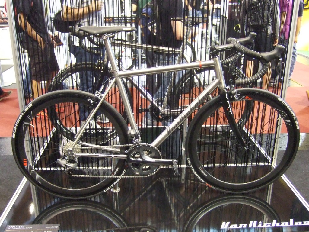 Several intriguing machines were on display on the Eurobike stand of titanium specialists Van Nicholas: a new lightweight “all-day saddle occupancy” distance road bike at an entry-level price point named Mistral; the new, more versatile Yukon and the stunning superlight Di2-ready Aquilo…