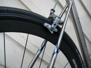 The company’s 5cm VNT Carbon Wheelset, weighing 1,720g and wrapped in Vredestein Fortezza Tricomp tyres, completes the look.