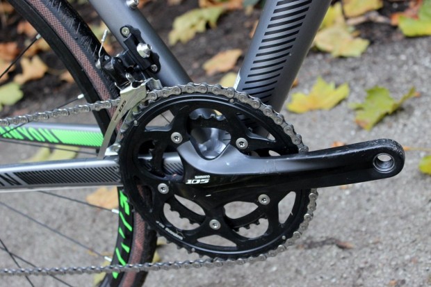 The majority of the groupset components are Shimano 105. The Japanese firm’s mid-range setup has developed a well-earned reputation for performance and affordability and it’s all you’ll ever need on a winter bike. It’s a workhorse which will run without any problems (if setup correctly) and shifting is accurate and reliable.