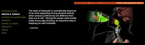 The primary cause of dehydration is sweat loss, and when these lost fluids aren’t replaced, the body’s heat management system is compromised. Even if the body’s fluid level falls below that of 98%, impaired performance can be expected. Gatorade has been formulated to be quickly and easily absorbed by the body. Additionally, to prevent the chance that a bad tasting drink will put you off drinking when you most need it, Gatorade tastes great when you’re exercising.