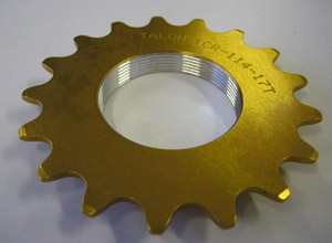 Luxury is not a word commonly associated with fixed wheel cycling. There’s not even the luxury of a quick freewheel from time to time, after all. As for fitting exotic components to something that is unlikely to exceed 20mph downhill… But if you must, this CNC-machined rear sprocket from St John St Cycles will add just that touch of luxury the average fixer so badly needs. Offered in tooth counts from 16 to 22 teeth, the sprocket is made to accept a 3/32” chain. This means, of course, that it will also take a 1/8” chain, which is important for those running a 1/8” chainring. It also means that there is some room for misalignment between sprocket and ‘ring when used with the wider chain. Otherwise, use it as an excuse to go for a 3/32” transmission all-round, which will prove smoother and quieter than 1/8”, provided of course that the sprocket and chainring are in line. The sprocket itself certainly runs very sweetly compared to steel.