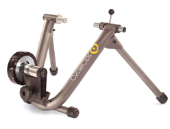 There’s no adjustable resistance with this model, instead you get progressive resistance which varies with your cadence and gear choice, through something CycleOp’s call Power Band Technology. It works fine we like the simple no nonsence approach. For the price, the Magneto is hard to beat; it’s simple to setup and use, works perfectly and folds away in a second.