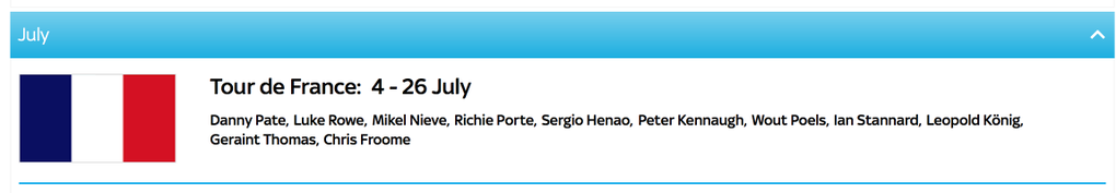 Tour de Suisse runner-up Geraint Thomas, British champion Peter Kennaugh, Ian Stannard and potential debutant Luke Rowe were all included in the provisional line-up listed on the team website, though the list was later taken down.