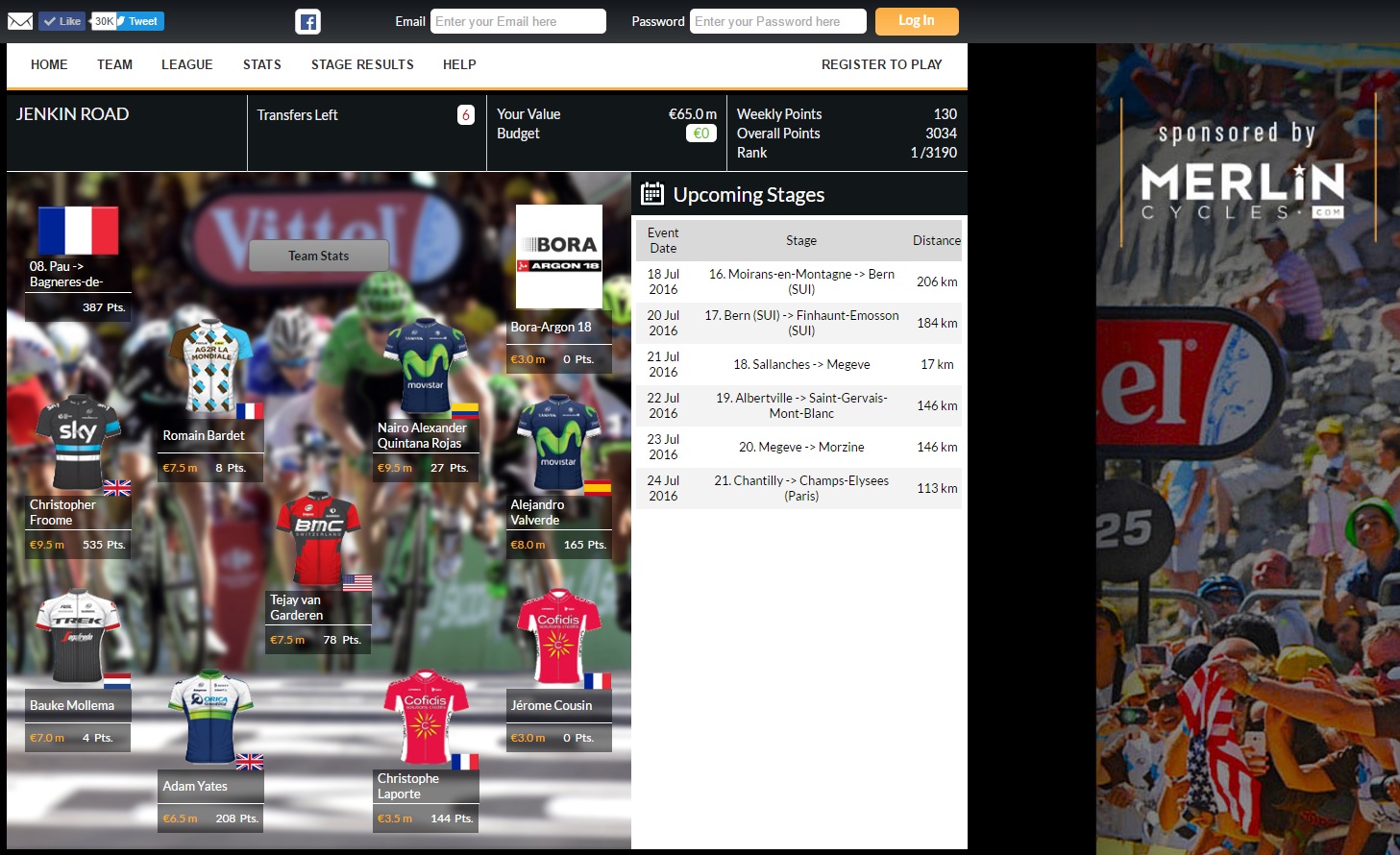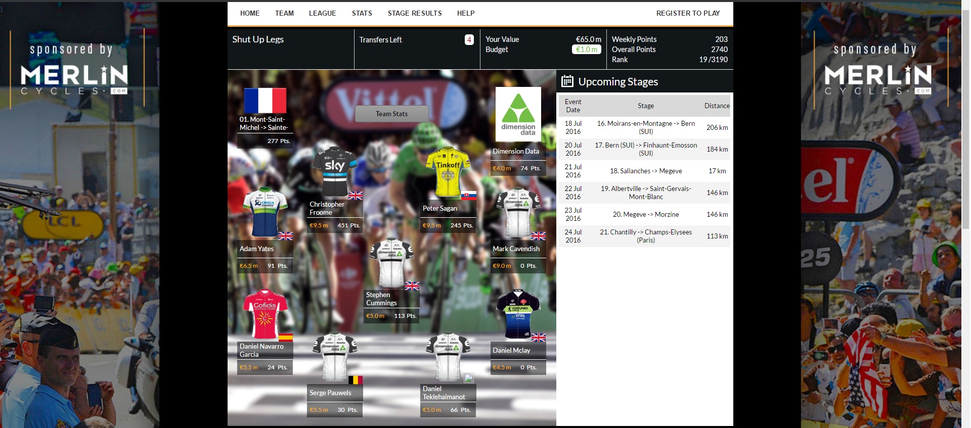 Which means the race to be crowned RCUK Fantasy Tour de France 2016 champion is still very much alive with “JENKIN ROAD” leading the battle to win a Merlin Roc 2017 Road Bike worth £1,120.