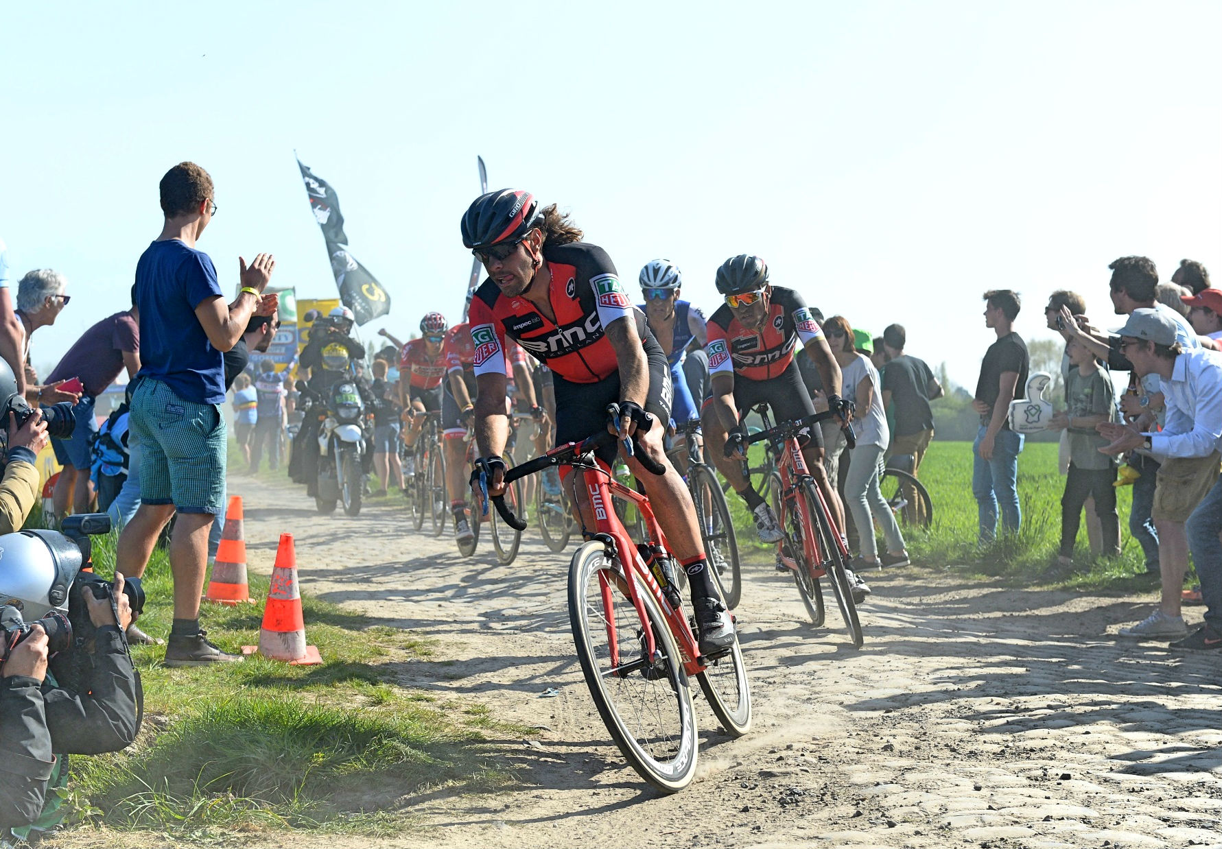 Daniel Oss got himself in the early breakaway at Paris-Roubaix and was looking fairly lively for much of the race out ahead. Then, as it became clear that the break was not going to make it, Oss switched modes, from escapee to domestique.