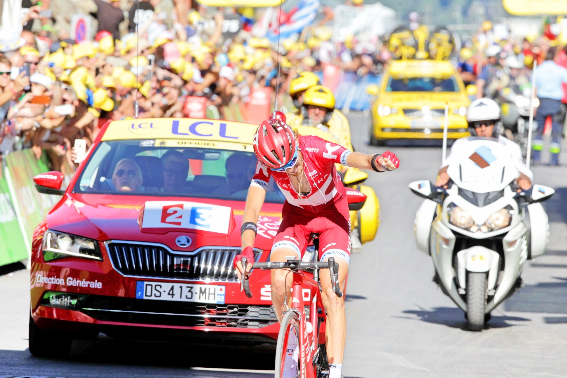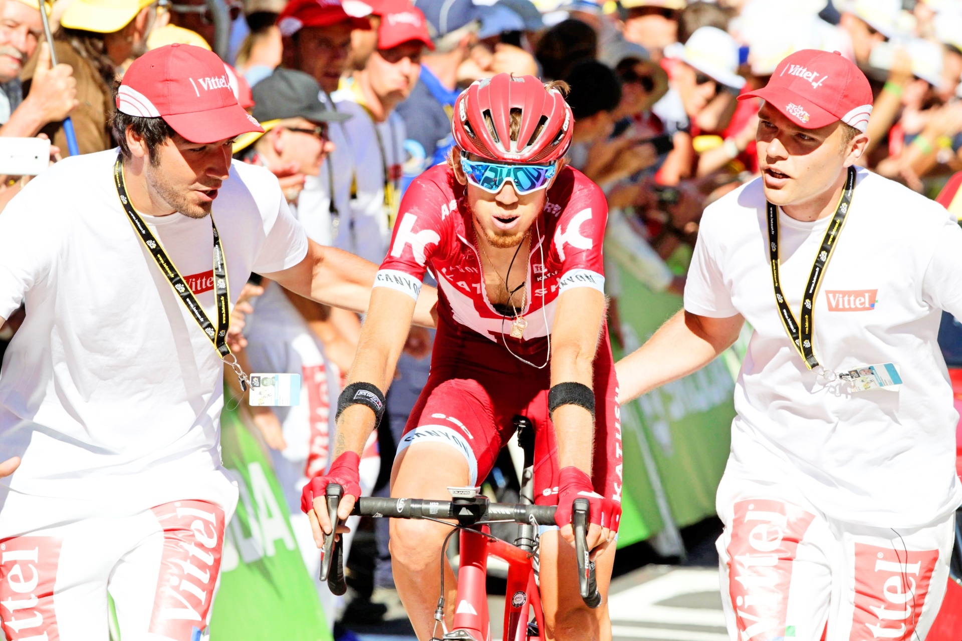 Ilnur Zakarin (Katusha) was the stage winner on the Swiss climb, barely able to lift an arm in celebration as he crossed the finishing line after his efforts, but it was in the peloton where the real drama took place – Froome following an attack by former team-mate Richie Porte (BMC Racing) and stretching his overall lead to more than two minutes as a result.