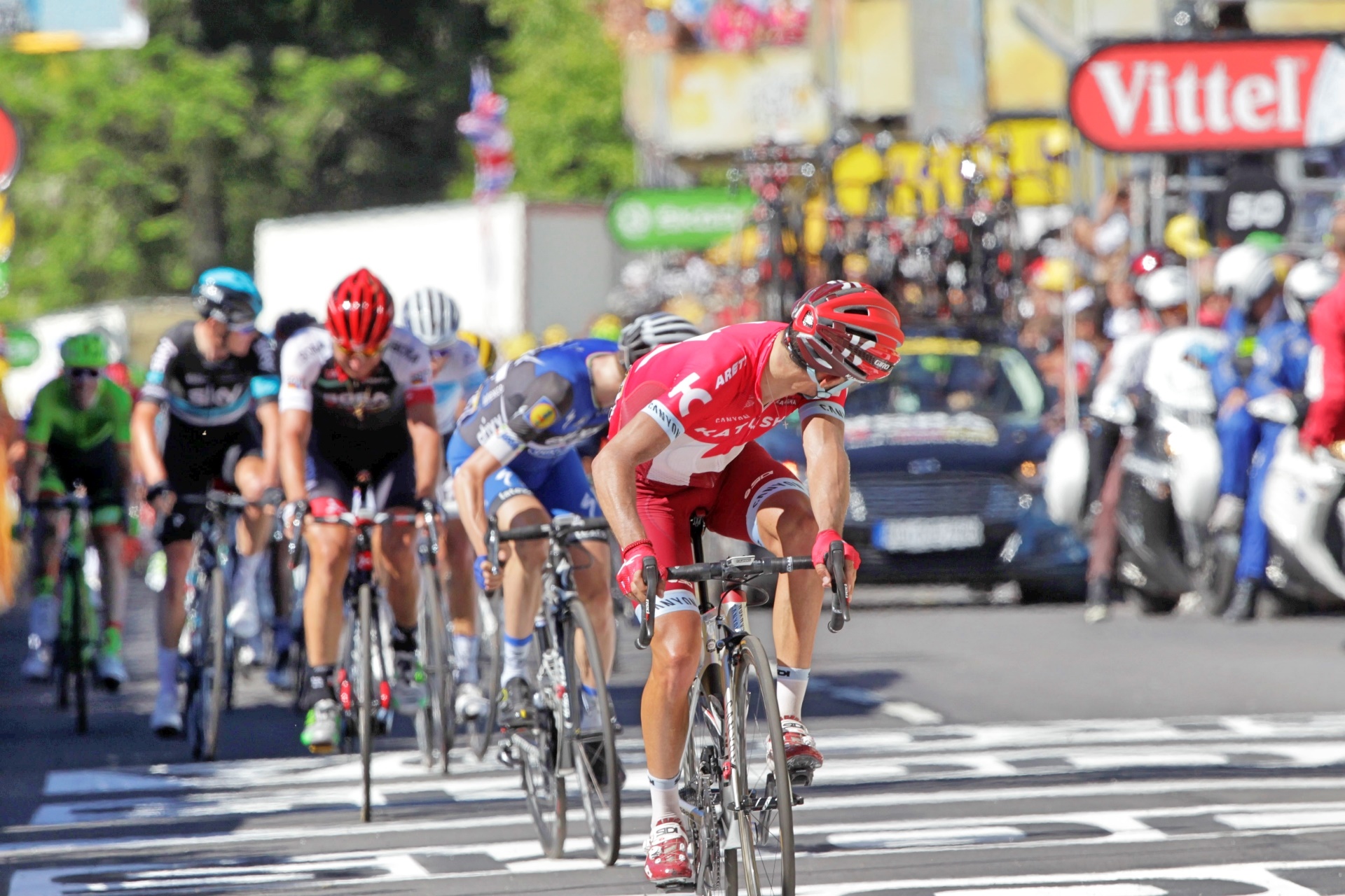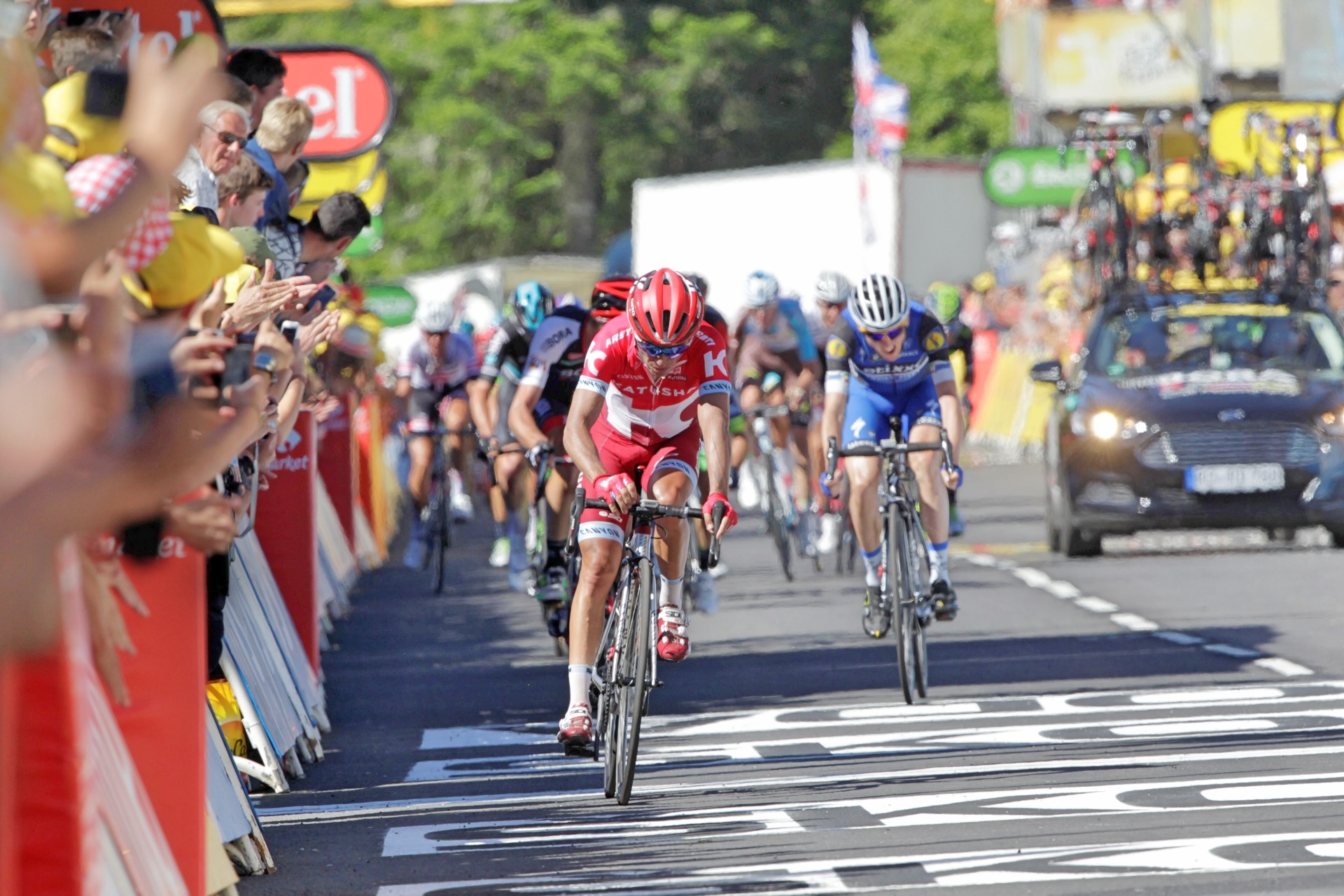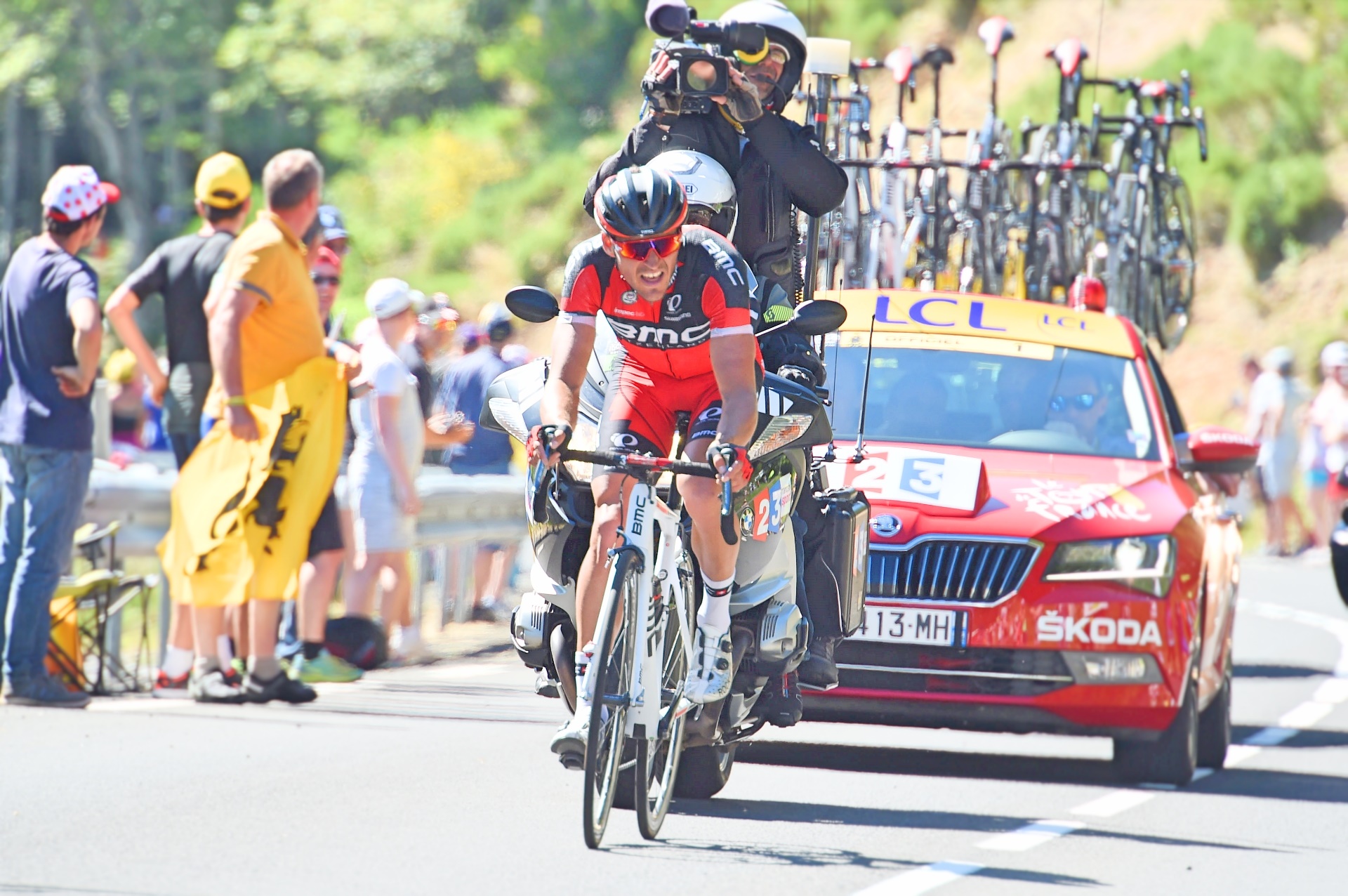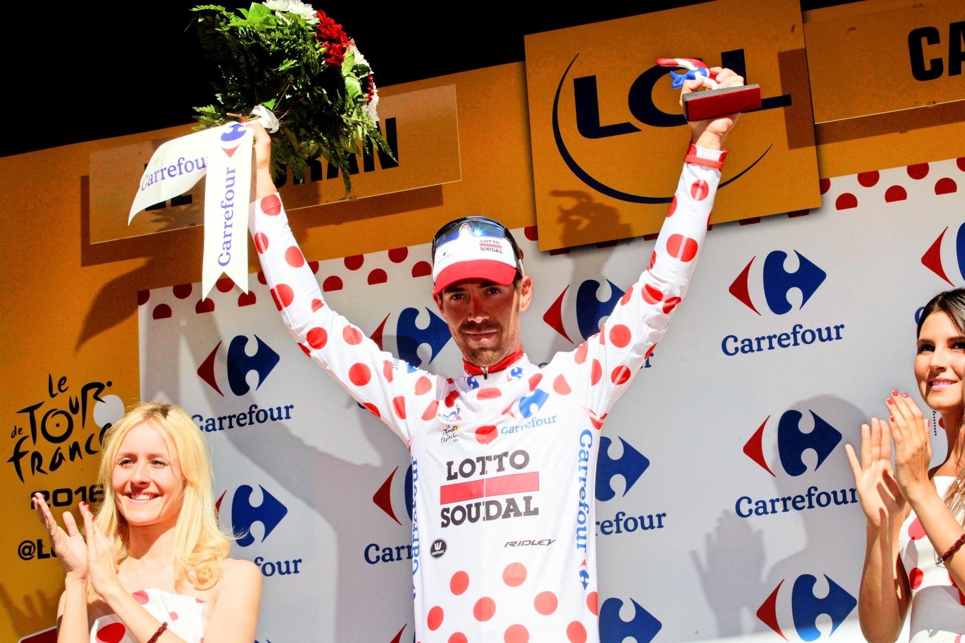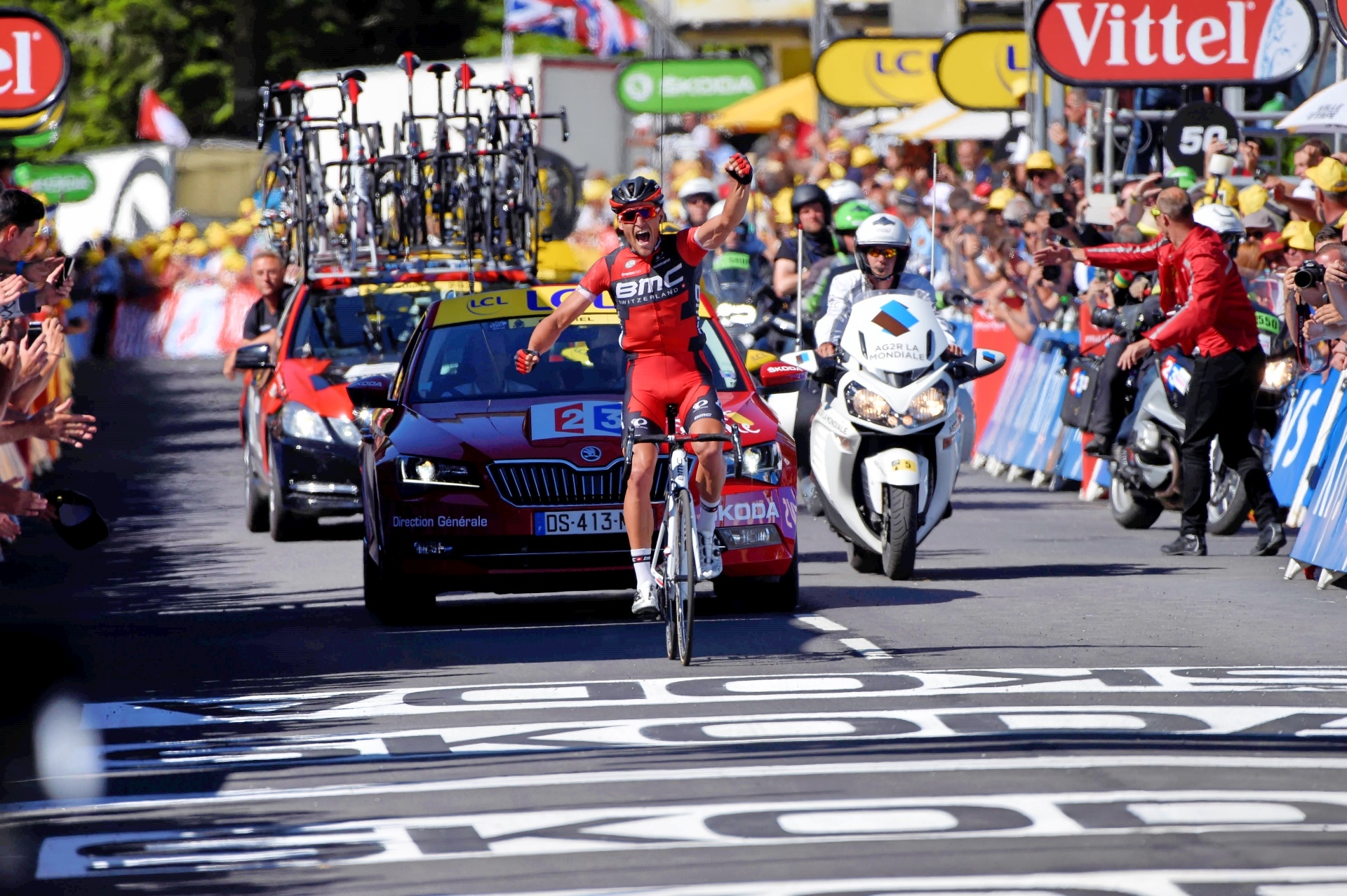 Van Avermaet proved strongest from what was initially a nine-man break, with he and fellow Belgian Thomas de Gendt – who will take over the polka dot jersey after his exploits – jumping clear of their companions.