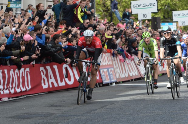 Kittel’s remarkable effort to overhaul Ben Swift (Team Sky) to win stage three in Dublin saw the 26-year-old collapse on the road after crossing the finish line.