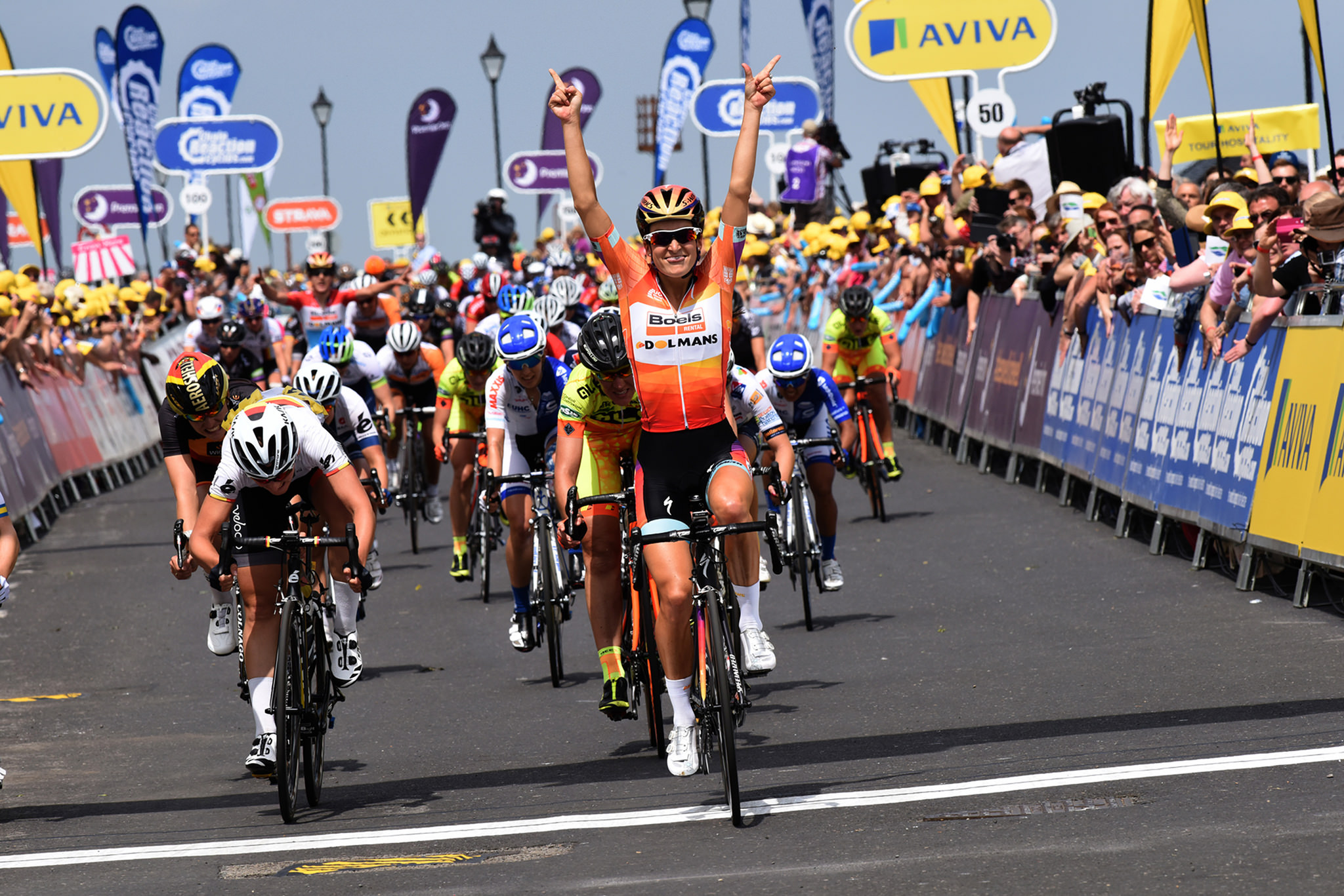 Lizzie Deignan won the first stage of the 2015 Women’s Tour but crashed into a photographer fractions of a second after this image was taken (Pic: Sweetspot)