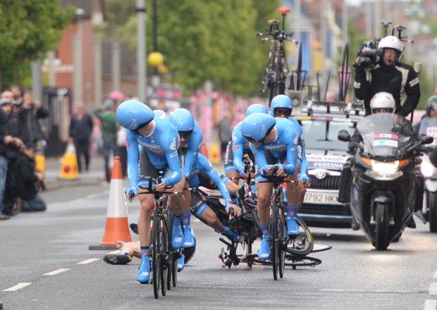 Hitting the deck hard, Martin – who had been in the middle of the American team’s formation – brought down three further riders behind him as each collided with their leader.