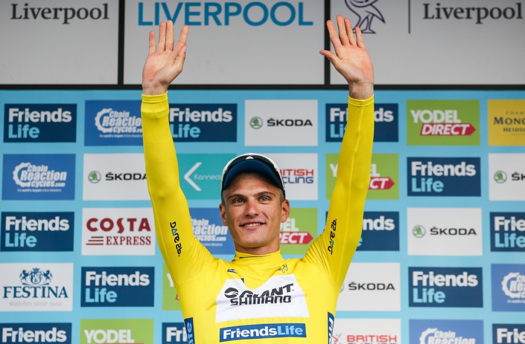 The German outsprinted Nicola Ruffoni (Bardiani-CSF) with a powerful kick at the end of the Liverpool circuit, celebrating his fourth victory in the United Kingdom this year after triumphs in Belfast, Harrogate and London already.