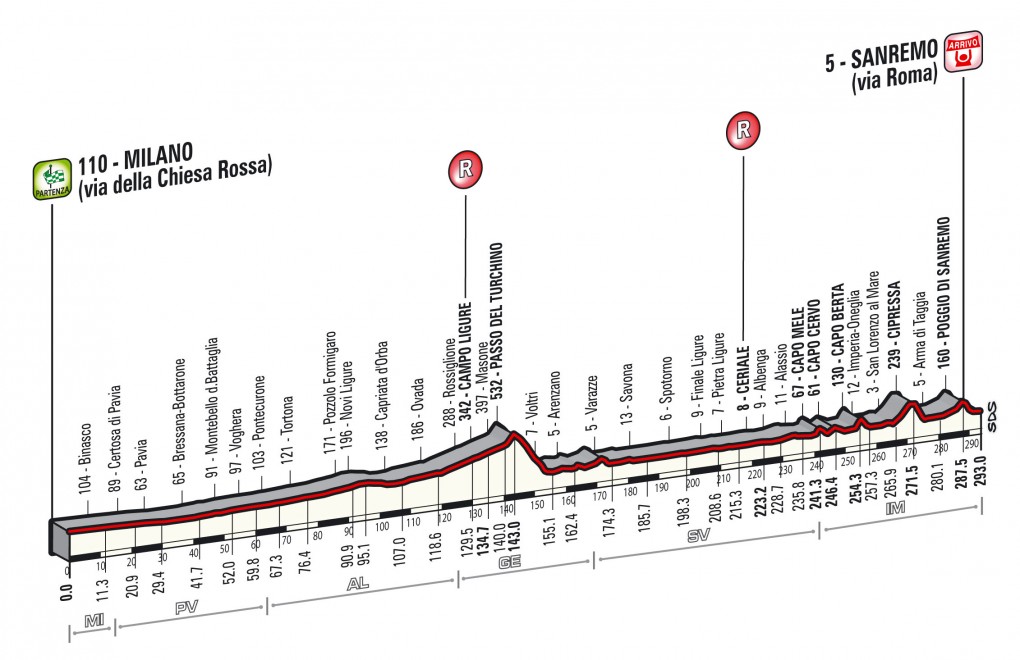 The key passages of the Passo del Turchino, Capo Mele, Capo Cervo, Capo Berta, Cipressa and Poggio remain, but organisers hope the modified finale will make for an unpredictable finale to the season’s first – and longest – Monument.