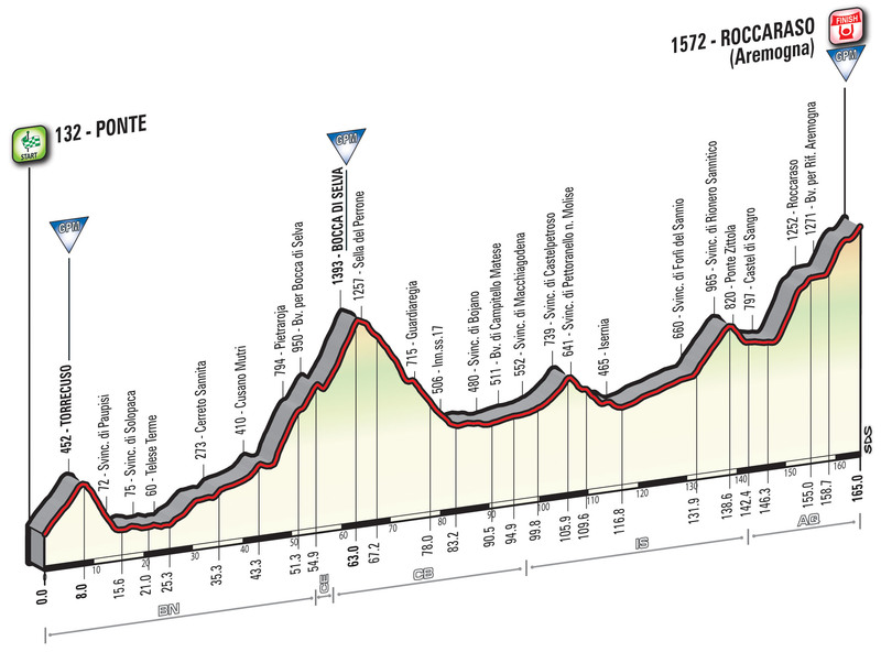 An uphill start to Torrecuso is followed by the Bocca di Selva before the run-in to the Aremogna, where the stage winner will be crowned.
