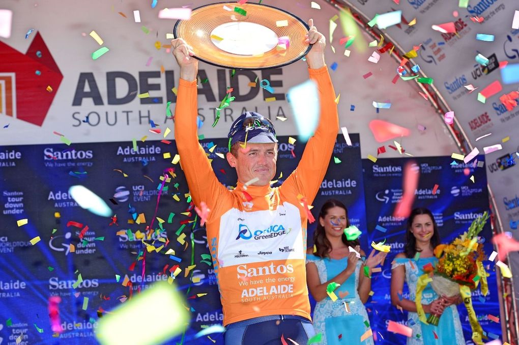 Simon Gerrans celebrates his fourth Tour Down Under victory, but no rider has ever won in consecutive years (pic: Sirotti)