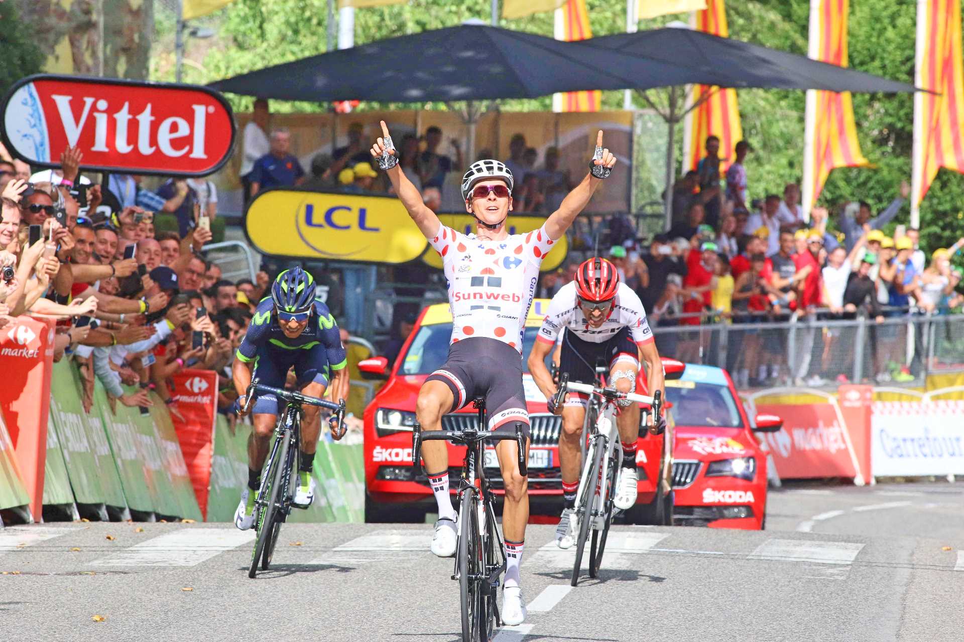 Simon Yates (Orica-Scott) is in the white jersey of best young rider, five-time stage winner Marcel Kittel (QuickStep Floors) is in green and Bastille Day stage winner Warren Barguil (Team Sunweb) wears the polka dot jersey.