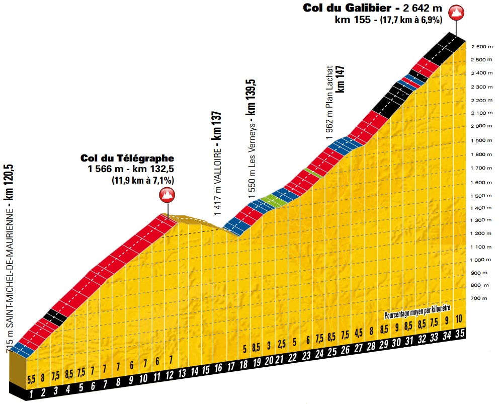 And that’s followed by the fabled Col du Galibier – back on the menu for the first time since 2011 – via the Col du Telegraphe.