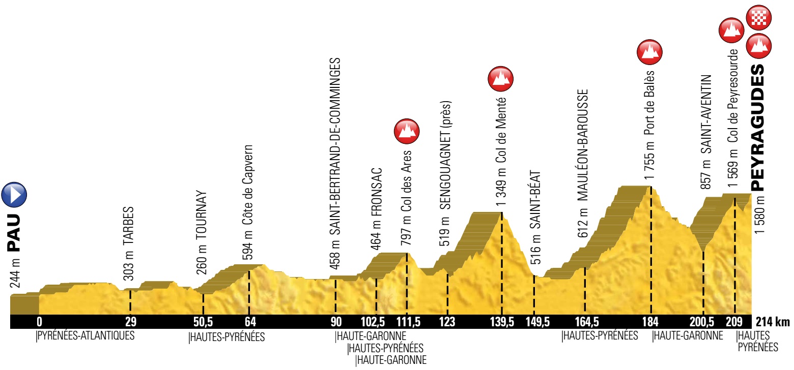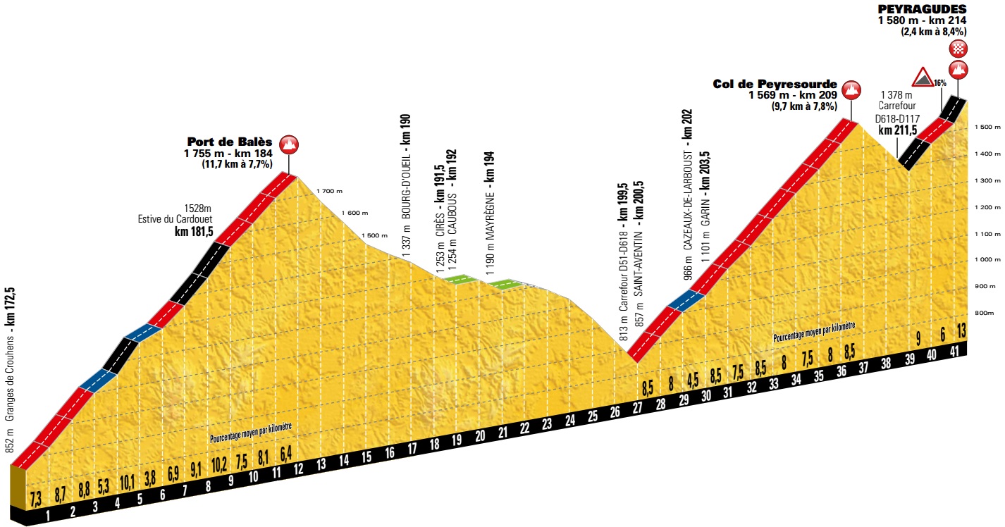 And the action should do it justice too – at 214km, the stage is a long one and packs in plenty of climbs. The Col de Mente and the Port de Bales will strip the peloton to its bare bones for the final ascent.