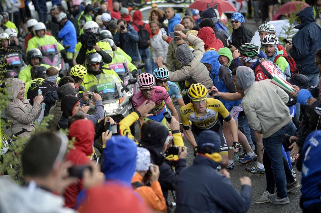 Steven Kruijswijk leads Alberto Contador up the Mortirolo at last year’s Giro d’Italia (pic: Sirotti)