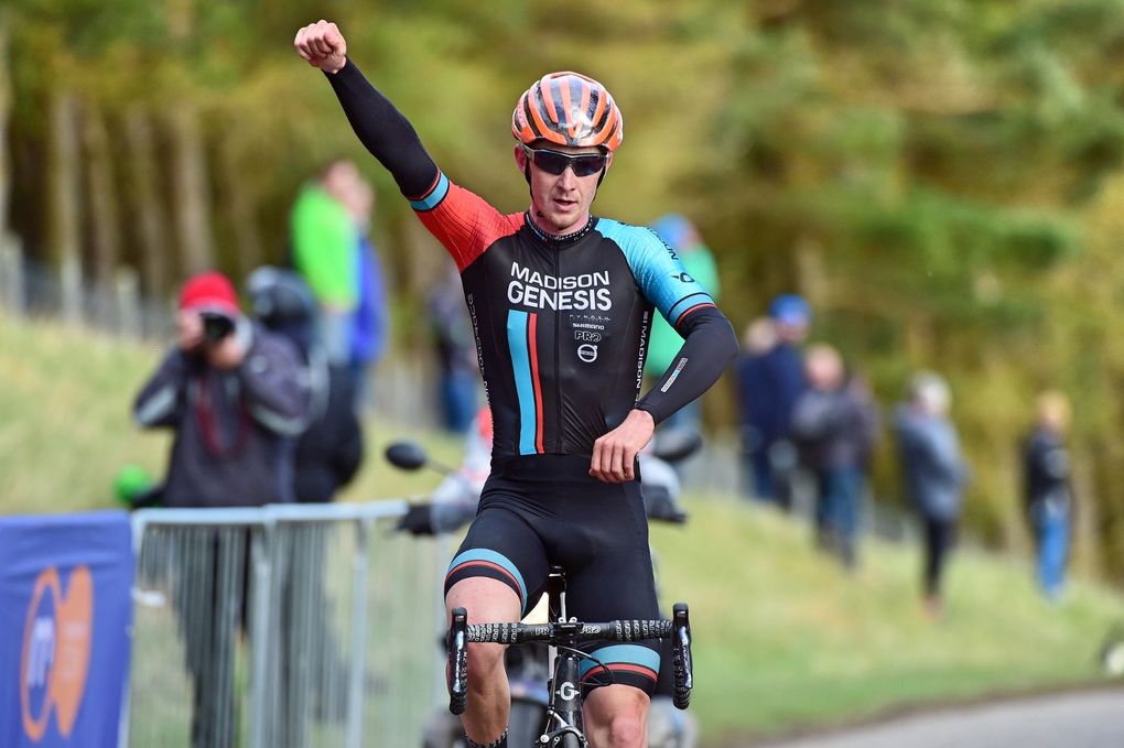 Erick Rowsell celebrates victory on stage two of the Tour of Reservoir; the Madison-Genesis rider was the best-placed Brit in last year’s race (pic: Alex Broadway/SWpix.com)