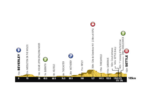 Greenhow Hill, a 2.8km ascent with an 8.6 per cent gradient is the only categorised climb of the day, though the finishing circuit does feature an unclassified rise to the intermediate sprint point at Giggleswick.