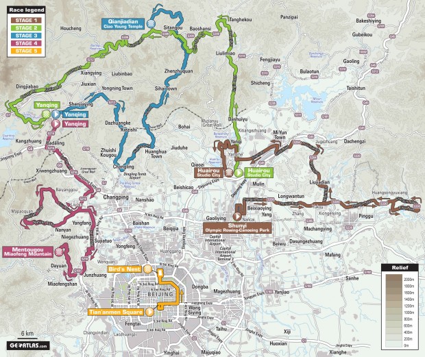 Stage one – Shunyi to Huairou Studio City: The 190.5km opening stage of the Tour, which rolls out at the host city of the 2008 Olympic rowing and canoeing events, is certainly one to favour the sprinters.