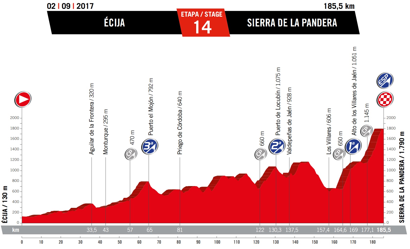 Saturday September 2: stage 14 – Ecija to Sierra de la Pandera, 185.5km summit finish