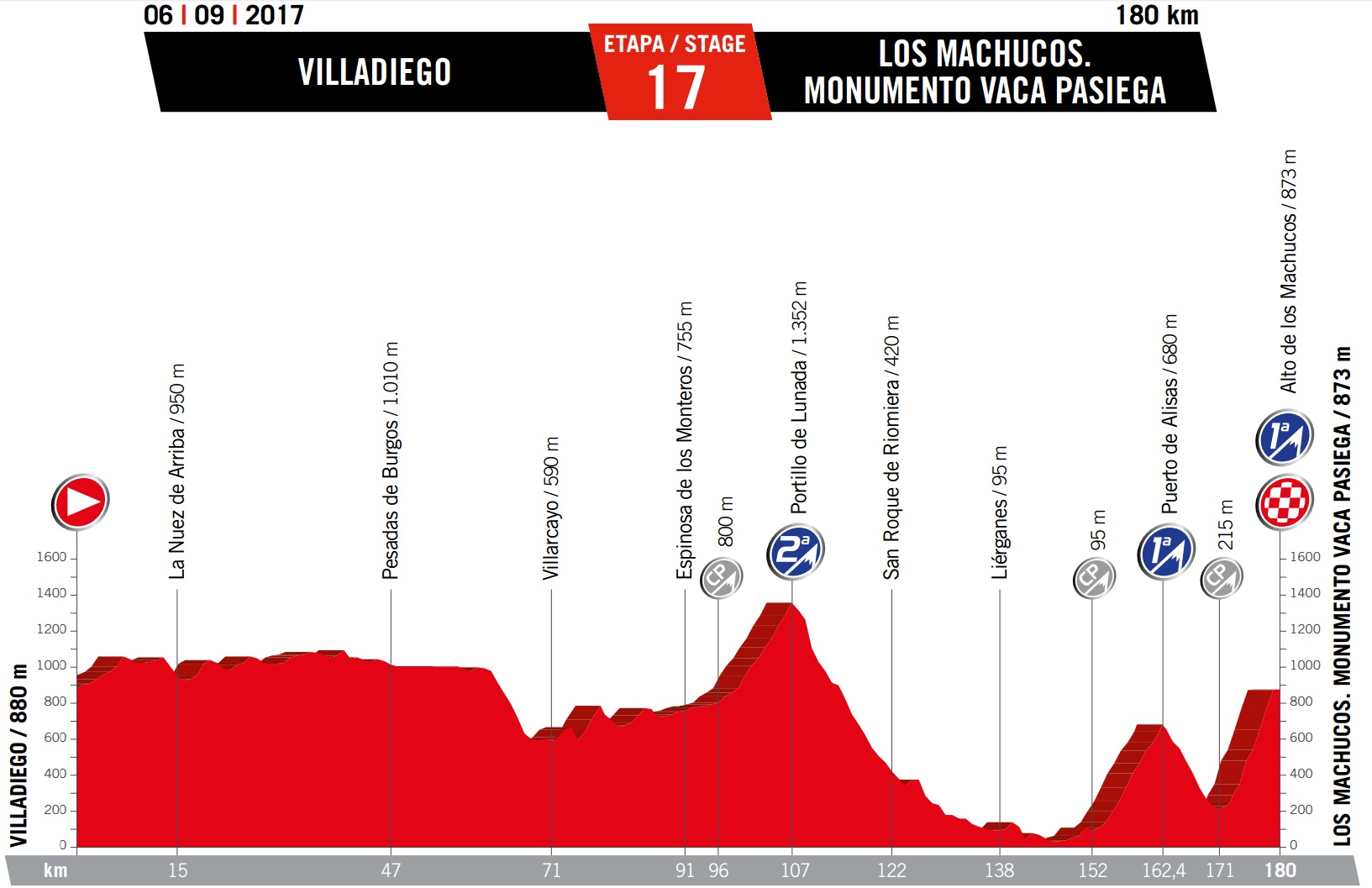 Wednesday September 6: stage 17 – Villadiego to Los Machucos, 180km summit finish