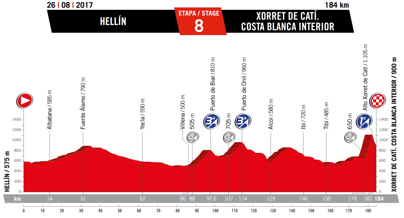 Saturday August 26: stage eight – Hellin to Xorret de Cati, 184km