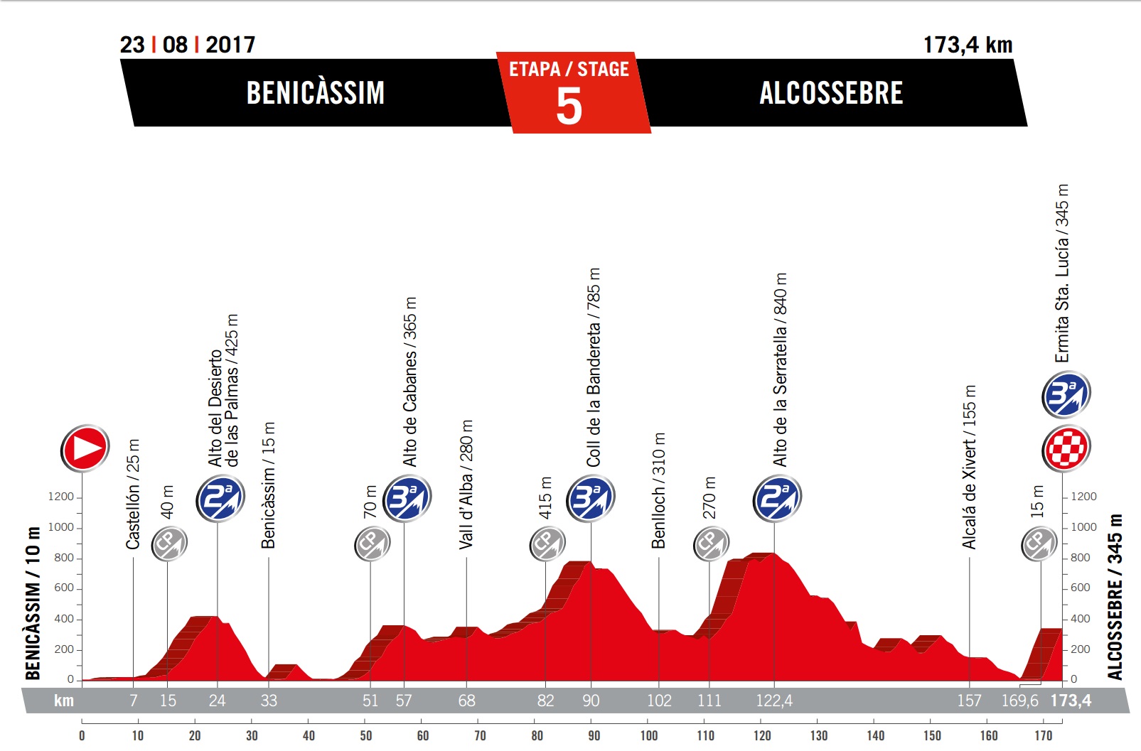 Wednesday August 23: stage five – Benicassim to Alcossebre, 173.4km summit finish