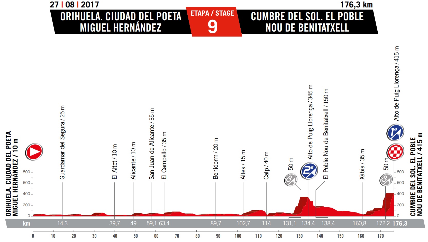 Sunday August 27: stage nine – Orihuela to Cumre del Sol, 176.3km summit finish
