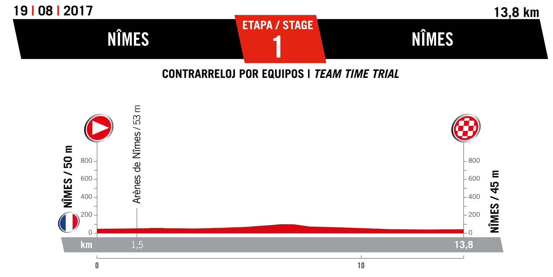 Saturday August 19: stage one – Nimes (FRA), 13km team time trial